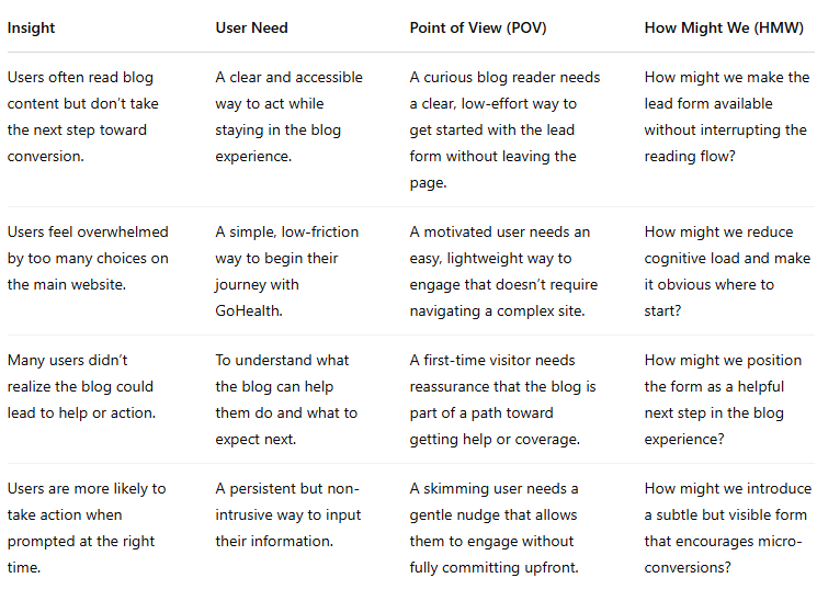 I led the transformation of GoHealth’s blog from a passive content channel into a high-performing conversion surface. By embedding conversion directly into the reading experience, we aligned user intent with business goals and unlocked a new acquisition channel that consistently captured high-intent users.